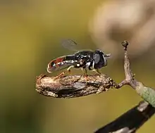Paragus tibialis, is a species of hoverfly found in many parts of Europe and North Africa. It has a preference for drier areas and its larvae feed on root aphids.[1][2][3]