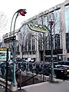 - Entourage Guimard: Square-Victoria-OACI station on the Montreal Metro in Canada has a genuine Guimard entrance made from parts of demolished Paris entrances (with map holder and "Métropolitain" sign and holder reproduced from the original molds). It was installed in 1967.[28] During restoration in 2001–2002, it was found to have the last examples of the original glass light globes, which in Paris had been replaced with plastic for safety; one was returned to the RATP and the other placed on display in the Montreal Museum of Fine Arts.[29]