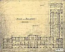 The Parliament of Queensland first met on 22 May 1860 in the former convict barracks on Queen Street.[2] The building was not considered a suitable meeting place for Parliament in the long-term, but the government was preoccupied with the construction of Government House, and plans for a new legislative facility were not made until after its completion.[3] In November 1863 a commission chose the site for the new parliamentary building on the corner of Alice and George Street.[3] The commission soon opened an Australia-wide competition for the new building's design, and offered a 200 guinea prize for the winning submission.[3] In April 1864, a design by Benjamin Backhouse was selected, but was later rejected after it was estimated that it would require £38,000 to construct, exceeding the maximum cost of £20,000 specified in the competition.[3][4] In October 1864, a design by William Henry Ellerker was recommended by the Parliamentary Commissioners.[5] However in November 1865, the commissioners withdrew their recommendation and resigned, following criticism by James Cowlishaw who claimed none of the submissions was satisfactory.[6][7] In December 1864, Ellerker wrote a public complaint about the process,[8] but ultimately plans by Charles Tiffin, the Queensland Colonial Architect, were selected. Amid controversy and allegations of undue influence on the outcome of the competition, Tiffin donated his prize money for the design to the Ipswich Grammar School.