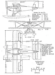 A retractable radiator, deployed via a handwheel in the cockpit, was mounted under the nose. When retracted this radiator warmed the cockpit and it was claimed that there would be no need for electrically heated clothing in the open cockpit, even at 20,000 ft (6,100 m) in winter. There were air vents for cooling the cockpit in summer and also a skin-type ancillary radiator built into the upper wing centre section surface. The land undercarriage was of the single-axle type, with forward-leaning oleo legs to the lower fuselage ahead of the leading edge and rearward struts. The wheels incorporated servo-assisted brakes operated from the rudder bar. The land- and seaplane undercarriages were designed to be rapidly interchangeable and shared the same attachment points, though the oleo legs were moved aft for the floats and there were additional bracing struts forward from their feet to the fuselage. The floats, linked by a pair of horizontal struts, were duralumin with a single step and water rudder.[1]