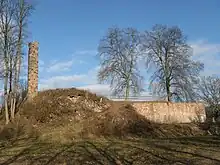 - Ruins of Burg Bartenstein, the castle that once belonged to the Counts of Rieneck, destroyed 1633, only the tower now preserved, digs by the Archäologisches Spessartprojekt are ongoing.