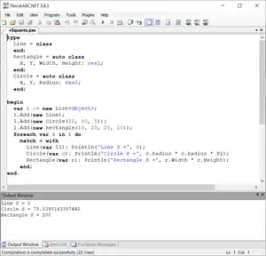 PascalABC.NET is a multi-paradigm programming language. It allows one to use different coding styles from oldschool Pascal to functional and object-oriented programming. The same task can be solved in different styles as follows:[31]