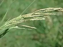 Paspalum urvillei is a species of grass known by the common name Vasey's grass, or Vasey grass. It is native to South America, and it is known in parts of North America as an introduced species. It is also naturalised in Australia, New Zealand, Japan, China, and southern Africa, including Madagascar.[1] It is a noxious weed where it has been introduced in Hawaii and New Caledonia.[2][3] It grows well in disturbed habitat, often in moist areas. This is a rhizomatous perennial grass which may reach 2 meters tall. The leaves are up to 2.5 centimeters wide and have a large, noticeable ligule. The inflorescence is a spreading or drooping array of up to 20