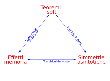 In theoretical physics, the Pasterski-Strominger-Zhiboedov triangle or infrared triangle is a series of relationships between three groups of concepts involving the theory of relativity, quantum field theory and quantum gravity. The triangle highlights connections already known or demonstrated by the authors, who are physicist Andrew Strominger and his collaborators Sabrina Gonzalez Pasterski and Alexander Zhiboedov.[1]