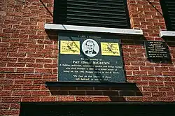 McGeown was found dead in his home on 1 October 1996, after suffering a heart attack.[3][17] Sinn Féin chairman Mitchel McLaughlin said his death was "a great loss to Sinn Féin and the republican struggle".[11] McGeown was buried in the Republican plot at Belfast's Milltown Cemetery, and since his death is often referred to as the "11th hunger striker".[18][19] In 1998 the Pat McGeown Community Endeavour Award was launched by Sinn Féin president Gerry Adams, with Adams describing McGeown as "a modest man with a quiet, but total dedication to equality and raising the standard of life for all the people of the city".[20] A plaque in memory of McGeown was unveiled outside the Sinn Féin headquarters on the Falls Road on 24 November 2001,[21][22] and a memorial plot on Beechmount Avenue was dedicated to the memory of McGeown, Kieran Nugent and Alec Comerford on 3 March 2002.[23]