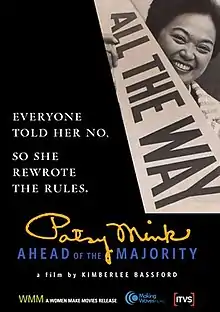 Patsy Mink: Ahead of the Majority is a 2008 documentary film that was written and directed by Kimberlee Bassford and is her first feature-length documentary film.[1] The documentary premiered at the Hawaii International Film Festival on October 12, 2008, and was later broadcast on PBS in May 2009.[2] It focuses on Patsy Mink (D-HI), who was the first woman of color and Asian American woman to serve in the U.S. Congress and the co-author of the Title IX gender equity legislation.