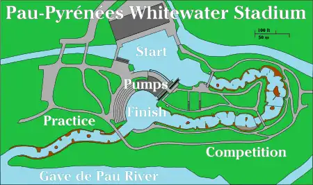 Pau-Pyrénées Whitewater Stadium (French: Stade d'eaux-vives Pau-Pyrénées) is the home training facility for the French national canoe slalom team. It was first used to train the French team for the 2008 Summer Olympics in Beijing. It 2009, it was the first of three venues used in the canoe slalom World Cup.[1] It is also a whitewater park for recreational use by the general public.