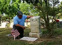 A detachment of Co. I, 112th Armored Cavalry of the Texas National Guard, provided an escort of honor and pallbearers included friends and former comrades—Joe Avila, S. M. Cardenas, Leonard Stewart, J. J. Poinboeuf, Louis Kroupa, Tom Simmons, Charles Flores and Ralph Hinojosa.[11]