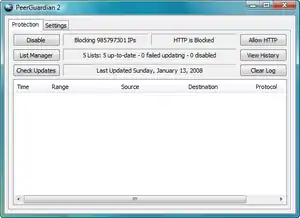 ![]() PeerGuardian 2 under Windows Vista | |