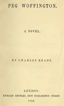 Peg Woffington is an 1853 novel by the British author Charles Reade. It was inspired by the popular stage play Masks and Faces which he had co-written with Tom Taylor the previous year.[1] Reade portrayed the London success of the Irish actress Peg Woffington (1720-1760) and featured other prominent figures of the days such as David Garrick.