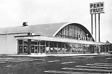 After World War II and throughout the 1950s, the company expanded its territory, opening stores in both New York and Baltimore. However, the company was less than successful with these stores, partly because of their geographic distance from Philadelphia. Stores built in the 1950s had a distinctive design, topped by a wide sweeping arch roof. Some of these buildings are still in use today. In 2016, the former Penn Fruit store on Frankford Avenue, one of the last with an intact arch design, was recommended and approved for city landmark status.[3][1][4]
