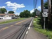 Pennsylvania Route 563 (PA 563) is a state highway in the U.S. state of Pennsylvania. The route runs 21.15 mi (34.04 km) from PA 63 in Upper Salford Township northeast to PA 412 in Nockamixon Township. The road runs through mostly rural areas in the northern parts of Montgomery and Bucks counties. Along the way, the route passes through the northern part of Perkasie and forms a concurrency with PA 313 in East Rockhill Township. North of here, PA 563 runs through Nockamixon State Park, heading to the northwest of Lake Nockamixon.