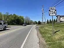 When routes were first legislated in Pennsylvania in 1911, what is now PA 724 was designated as part of Legislative Route 147 between east of Reading and North Coventry Township and as part of Legislative Route 201 between North Coventry Township and Phoenixville.[5] In 1927, PA 83 was designated along the road between Poplar Neck Road and PA 23 while the road west of there remained unnumbered.[6][7] By 1940, the current alignment of PA 724 between Sinking Spring and PA 83 existed as an unnumbered paved road.[8] By 1950, PA 83 was shifted to a new alignment between Kenilworth and Parker Ford, with the former alignment now Old Schuylkill Road.[9] In 1961, PA 83 was renumbered to PA 183 to avoid conflict with I-83 in South Central Pennsylvania.[10] PA 724 was designated onto its current alignment between US 422 in Sinking Spring and PA 23 near Phoenixville by 1966, replacing the portion of PA 183 between Poplar Neck Road and PA 23.[11][12]
