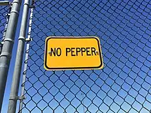 Some ballparks have banned pepper games because of the danger of balls landing in the stands and injuring spectators, as well as because its concentrated play damages the grass.[1] Many ballparks display "NO PEPPER (GAMES)" warnings behind or near home plate.