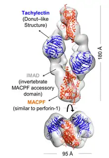 - 1 2 3 4 5 6 7 Giglio ML, Ituarte S, Milesi V, Dreon MS, Brola TR, Caramelo J, et al. (August 2020). "Exaptation of two ancient immune proteins into a new dimeric pore-forming toxin in snails". Journal of Structural Biology. 211 (2): 107531. doi:10.1016/j.jsb.2020.107531. hdl:11336/143650. PMID 32446810. S2CID 218873723.