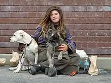 Social interaction among homeless people is impacted by pet ownership. Many homeless pet owners reported that having a dog facilitated conversation, but at the same time having a dog had a negative impact on their ability to find housing because homeless shelters, rental housing, and subsidized government housing continue to have strict regulations against allowing pets to reside with their homeless owners. Some action is being taken by social institutions to address the issue. San Francisco initiated a program which addressed both homelessness and animal shelter overcrowding: WOOF – Wonderful Opportunities for Occupants and Fidos.[9] Started in August 2012, the homeless are given a dog that would otherwise be euthanized, to foster until a permanent home can be found. Homeless people are trained to care for the dogs and will receive a weekly stipend.[9] In addition to dog training lesson, the foster owners received training in job readiness, communication skills, banking and health care. All pet food and care is provided by the shelter. Pets of the Homeless is a national nonprofit with a mission to feed and provide basic emergency veterinary care to pets of homeless people.[10] In the UK, Veterinary surgeons and registered veterinary nurses have responded to the issue by creating a charity called Streetvet which provides free accessible veterinary care. Volunteer veterinary professionals provide a weekly outreach service and a 24/7 emergency service to clients in need.[11]