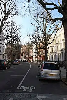 Northern end of Philbeach Gardens crescent. seen from Warwick Road