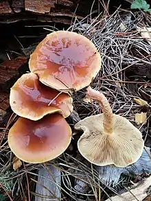 Pholiota velaglutinosa is a species of agaric fungus in the family Strophariaceae. Found in the western United States, it was described as new to science in 1968 by American mycologists Alexander H. Smith and Lexemuel Ray Hesler. Fruit bodies have sticky reddish caps measuring 3โ6 cm (1.2โ2.4 in) in diameter. The stipe bears a gelatinous ring.[1]