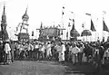 Phongyibyan is widely observed by Buddhists throughout Myanmar, including the Bamar, Mon, Rakhine, and Shan peoples. Similarly elaborate cremation ceremonies, congruous with those in Myanmar, are also held by the Northern Thai people.[2] Among the Shan and Lanna peoples, the ceremony is known as poy law (ပွႆးလေႃ or ปอยล้อ),[3] which literally means "ceremony of the cart,"[4] whereby poy is a Burmese loanword meaning "festival" or "ceremony" (cf. Poy Sang Long).