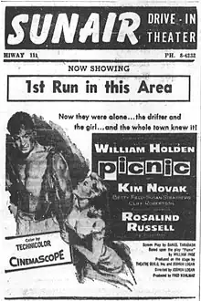 - ↑ Weiler, A. H. (1956-02-17). "'Picnic,' at Music Hall, Faithful to Inge Play". The New York Times. p. 13.