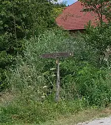 The fingerpost of the Pilgrims' Trail in the village of Hrastovica