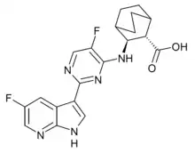 Pimodivir (VX-787, JNJ-63623872) is an antiviral drug which was developed as a treatment for influenza. It acts as an inhibitor of influenza virus polymerase basic protein 2, and has shown promising results in Phase II clinical trials.[1][2][3] However, in late 2021, Janssen announced that the clinical development of pimidivir had been halted due to lack of benefit over standard of care.[4]