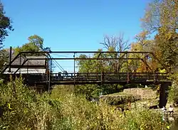 The Pine Mill Bridge is an historic structure located in Wildcat Den State Park in rural Muscatine County, Iowa, United States. It was built in 1878 near the Pine Creek Gristmill, the only place in Iowa where a mill and bridge combination remains in place. The bridge was listed on the National Register of Historic Places in 1998 as a part of the Highway Bridges of Iowa MPS.[1]