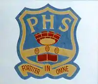 The badge includes the letters PHS (Pinetown High School), which are also used by its brother school, Pinetown Boys' High School, a crown which represents the period when South Africa was part of the British Empire, three pine cones honouring Sir Benjamin Pine, who was instrumental in developing Pinetown when it was still a village, and a book which stands for education.