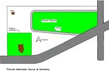 The Pinhook Methodist Church and Cemetery are located in New Durham Township, LaPorte County, Indiana at Wozniak Road with State Road 2. Known as the village of Pinhook, formerly New Durham. The village is mostly residential along the south side of State Road 2. The site includes the Pinhook Methodist Church (1847), the Pinhook Cemetery (1850), the cemetery storage shed (ca. 1900), and the old pump (ca. 1930).[2]