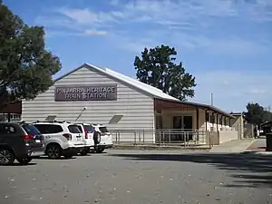 In 1911, Pinjarra became a junction station with the opening of the Pinjarra to Narrogin railway. Today this line is operated as a heritage railway by the Hotham Valley Railway, with its depot opposite Pinjarra station.[3] In 1986, the station building was destroyed in a fire. A new building was erected in 2007 and today houses the Pinjarra Visitor Centre.[4][5]