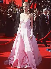 The pink Ralph Lauren dress of Gwyneth Paltrow was designed by Ralph Lauren and worn to the 71st Academy Awards on 21 March 1999 at the Dorothy Chandler Pavilion in Los Angeles. The dress received mixed reviews[1][2] and the style was compared to that of the actress Grace Kelly.[3] The dress was widely copied after the event, and Paltrow was credited for bringing pink back into fashion.[4]