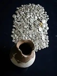 More than 1000 copper and silver coins discovered during the excavations in Pistiros shed light on its internal and external trade contacts. This is the unique numismatic complex discovered during ordinary excavations where the coinage of several Thracian rulers is represented, including Amadocus I, Bergaios, Cotys I, Amadocus II, Teres II, Cersobleptes, and Seuthes III. The collection also contains coins from several Greek city-states, including Thasos, Maroneia, Parion, Thracian Chersonese, Kypsela, Enos, Apollonia, Messembria, Damastion, Sermyle, and Kardia. Also included in the find is coinage of Ancient Macedonian and Hellenistic rulers (Philip II, Alexander the Great, Cassandros, Demetrios Poliorketes, Lysimachos, Seleucus I, etc.). In 1999 another fundamental discovery was made – a collective find consisting of 552 silver and gold coins issued by Alexander the Great, Demetrios Poliorketes, Lysimachos and Seleucus I.