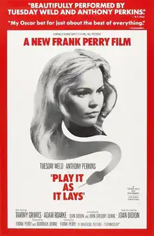 Play It as It Lays is a 1972 American drama film directed by Frank Perry from a screenplay by Joan Didion and John Gregory Dunne, based on the 1970 novel of the same name by Didion. The film stars Tuesday Weld and Anthony Perkins, who previously starred together in the 1968 film Pretty Poison.
