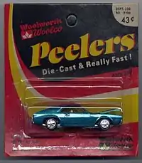 Playart (the name in all lower case with a larger "a" in "art" and dots in the bowls of the letters) die-cast cars were made in Hong Kong and mostly were distributed with the name Peelers, the in-house brand of toy cars for Woolworth. During the late 1970s and early 1980s, Sears sold blister packaged Playarts as Road Mates. McCrory stores had a line of Playart vehicles called Freewheelers. They were blister-packaged on a blue, white and yellow card. Another Playart blister package stated "Die cast metal - En metal moule", perhaps for the French market. In another twist the American distribution company for Playart was Model Power which focused on train accessories. The small sized cars were packaged under this name as Road Kings.