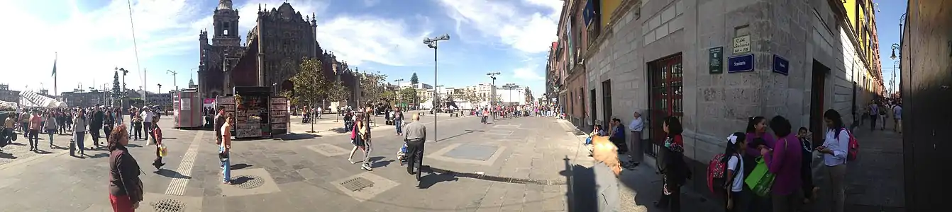 The plaza is called in various ways as there is no official nomenclature on its name.[2] It is called Plaza Manuel Gamio by the INAH, although in some sources it appears as Del Seminario or Del Templo Mayor.[2]
