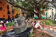 Plaza de la Catedral (Spanish for 'cathedral square'), also known as Plazuela de las Monjas ('little square of the nuns'), is a small public square located in front of the Cathedral of San Juan Bautista and next to the former Carmelite convent (now a Hotel El Convento) in the Old San Juan historic district of the city of San Juan, Puerto Rico. The small but historic square is possibly the oldest in the city,[1] dating to the foundation of the cathedral in 1521,[2] and is found at the end of a wide historical residential block bound by the alleyways (Spanish: caletas) of Las Monjas and San Juan to the north and south, respectively, and by Calle del Cristo ('del Cristo Street') to the east.[3] Caleta de San Juan connects this square to the San Juan Gate (Puerta de San Juan),[4] formerly known as the Water Gate (Puerta de Agua) as it was the main harbor entrance into the walled city. This block formerly contained the first Episcopal church in the city between 1909 and 1929 when it was moved to a bigger location in Santurce, and later housed the San Juan Children's Museum (Museo del Niño de San Juan), which closed in 2016.[5]