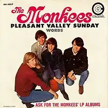 "Pleasant Valley Sunday" is a song by Gerry Goffin and Carole King, recorded and released by the Monkees in the summer of 1967. Inspired by their move to West Orange, New Jersey, and named for a street there, Goffin and King wrote the song about their dissatisfaction with life in the suburbs.[3]