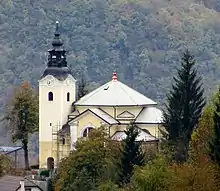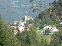 The local parish church is dedicated to Our Lady of Lourdes and belongs to the Roman Catholic Archdiocese of Ljubljana. It was designed by Franc Avsec[4] and built in 1904 with an octagonal nave.[6] A second church, built on Glinjek Hill (828 m) south of the main settlement, belongs to the same parish. It is dedicated to Saint George (Slovene: sveti Jurij) and originally dates to the 13th century. It was restyled in the 19th century, but retains some of its original features.[7]