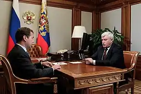 - ↑ "Указ Президента Российской Федерации от 4 сентября 2011 года № 1141 «О внесении изменения в состав Совета Безопасности Российской Федерации, утверждённый Указом Президента Российской Федерации от 25 мая 2008 года № 836»" [Decree of the President of the Russian Federation of 4 September 2011, No. 1141 "On introducing changes to the composition of the Security Council of the Russian Federation, approved by Decree of the President of the Russian Federation of 25 May 2008 No. 836"]. Archived from the original on 7 January 2012. Retrieved 13 September 2011.