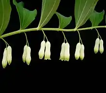 Polygonatum /ˌpɒlɪˈɡɒnətəm/,[2] also known as King Solomon's-seal or Solomon's seal, is a genus of flowering plants. In the APG III classification system, it is placed in the family Asparagaceae, subfamily Nolinoideae (formerly the family Ruscaceae).[3] It has also been classified in the former family Convallariaceae and, like many lilioid monocots, was formerly classified in the lily family, Liliaceae. The genus is distributed throughout the temperate Northern Hemisphere. Most of the approximately 63 species occur in Asia, with 20 endemic to China.[4]