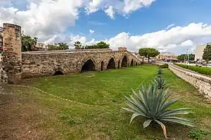 According to a legend, the bridge is situated in the place where the Archangel Michael appeared to the Norman Count Roger I of Sicily helping him to conquer Palermo, at that time an Islamic bastion.[1] It was completed in 1131, a year after the incoronation of Roger II as first King of Sicily. The construction was supervised by the admiral George of Antioch, the most powerful man of the Kingdom after Roger II. The bridge had the function to connect the capital to the royal gardens located across the Oreto River, like the Favara Park. Even now, the structure represents a symbol connecting the historic centre to the peripheral quarter of Brancaccio.[2][3]