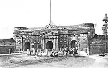 Michele Sanmicheli was appointed engineer in charge of the fortifications of Verona ("inzener sopra le fabriche," as defined by the Serenissima).[4] The appointment took place in October 1530 but was not effective until May 1531. From that time, work on the military structures continued more expeditiously.[5] Sanmicheli's first intervention was the design of the bastion of the Holy Trinity, starting in the year following the beginning of his appointment, which was followed later by work on the bastions of Riformati, San Bernardino, San Zeno, Spagna, and San Francesco, as well as a series of intermediate artillery emplacements, including that of the cavalier of San Giuseppe.[6] This included the creation of three city gates: the first was Porta Nuova (1532), which was followed by Porta San Zeno (1541) and Porta Palio (1547).[4][6]