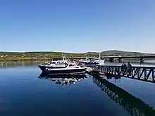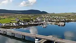 Portmagee (Irish: An Caladh, meaning 'the ferry')[2] is a village in County Kerry, Ireland. The village is located on the Iveragh peninsula south of Valentia Island, and is known locally as 'the ferry', in reference to its purpose as a crossing point to the island. Access to Valentia Island is now via the Maurice O'Neill Memorial Bridge (R565 road) from Portmagee, which was built in 1970 and named in memory of a member of the IRA executed in 1942 for his part in the shooting dead of Detective George Mordaunt in Dublin.[3][4]