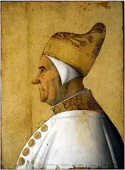 The Portrait of the Doge Giovanni Mocenigo is a tempera-on-wood painting attributed to Italian artist Gentile Bellini, datable between 1478 and 1485. It is held at the Museo Correr, in Venice.[1]