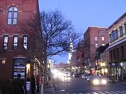 The Portsmouth Downtown Historic District encompasses the historic urban core of Portsmouth, New Hampshire. With a history dating to the 17th century, Portsmouth was New Hampshire's principal seaport and the center of its economy for many decades, and the architecture of its urban center is reflective of nearly four centuries of history. The district is roughly L-shaped, radiating from the downtown Market Square area to South Street in the south and Madison and Columbia streets in the west, with more than 1,200 historically significant buildings. It was listed on the National Register of Historic Places in 2017.[1] The district includes 35 previous listings on the National Register, and five National Historic Landmarks.