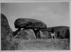 The Poskær Dolmen, as seen in this picture from 1937 (person beside it for scale)