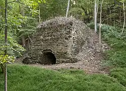 The Potomac Mills was a mill complex located along the Potomac River roughly .5 miles (0.80 km) downriver of Shepherdstown. Built in 1826, the complex was originally used as a gristmill. In 1829, the mill began producing cement for the Chesapeake and Ohio Canal's construction. The factory continued to produce cement after the canal opened, and it shipped its product along the canal to other cities. Flooding and drought conditions in the 1880s led the mill to reduce its operations, and by 1901 the mill closed permanently.[2]