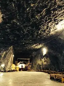 The Praid mine is a large salt mine located in central Romania in Harghita County, close to Praid. Praid represents one of the largest salt reserves in Romania having estimated reserves of 50 billion tonnes of NaCl.[1] The Praid salt mine is also an attraction on the route of the Via Transilvanica long-distance trail, which passes through the village of Praid.[2]