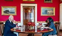 An October 24, 2022 letter, led by Jayapal and signed by 30 progressive Democrats, called on President Biden to pursue negotiations with Vladimir Putin to end the invasion of Ukraine. The letter was withdrawn a day later after Jayapal said it was drafted months ago and was released by a staffer "without vetting". The reason for the retraction was disputed, and Politico reported that Jayapal approved the letter's release on October 24.[64]
