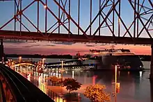 The President Casino opened in 1994 on the SS Admiral shortly after Missouri legalized riverboat casinos. When it opened, it included 100 table games and 150 video poker machines within its 70,000 square feet of gaming space, as early gaming regulations required games to be of skill.[1] It was owned by the now-defunct President Casinos which had other riverboat casinos in the mid-1990s. Isle of Capri Casinos attempted to buy the President Casino unsuccessfully,[2] but later, Pinnacle Entertainment bought the property for $46 million. The deal, completed on December 21, 2006, occurred at the same time Pinnacle was building its Lumière Place casino just adjacent to the President.[3]